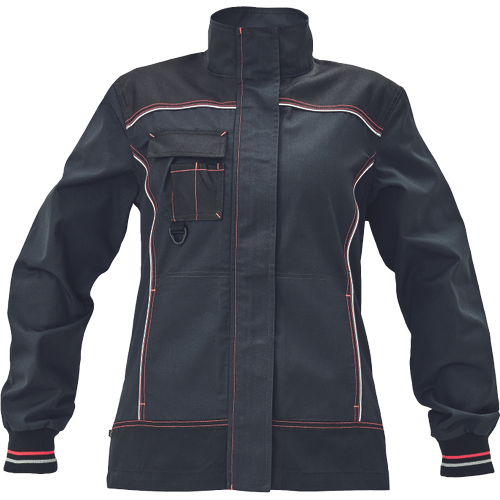 • damska kurtka robocza ze stójką • 2 przestronne kieszenie boczne • 1 wielofunkcyjna kieszeń napiersiowa • wzmocnienia na ramionach z materiału Oxford 600DOxford • elastyczne mankiety • dekoracyjne, kontrastowe przeszycia w kolorach HI-VIS