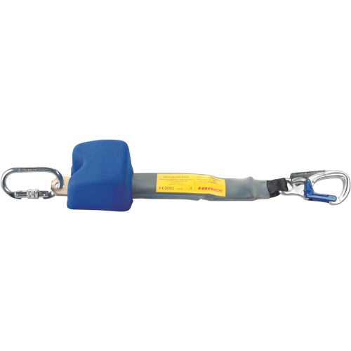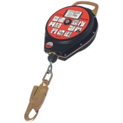 Urządzenie samohamowne o długości 2,25m, z rozwijaną taśmą włókienniczą z PA, zatrzaśnikami, amortyzatorem bezpieczeństwa, masa 1,2 kg, spełnia wymogi normy EN 360 (CE0082).