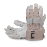 Kombinowane rękawice ochronne wykonane z dwoiny bydlęcej i bawełnianej dzianiny.