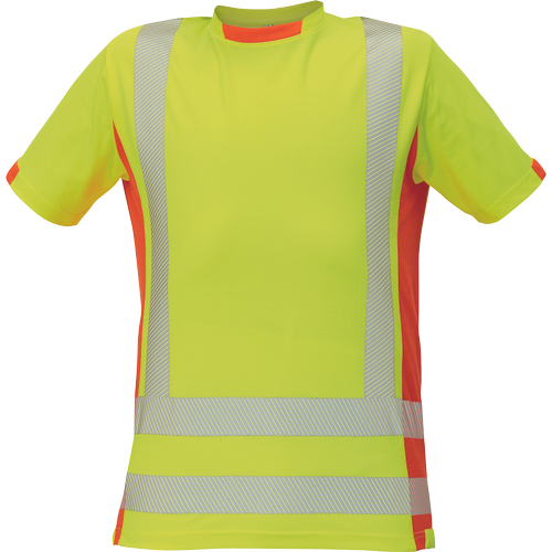 • męski podkoszulek atrakcyjnie łączący dwa kolory hi-vis z nowocześnie wyeksponowanymi taśmami odblaskowymi