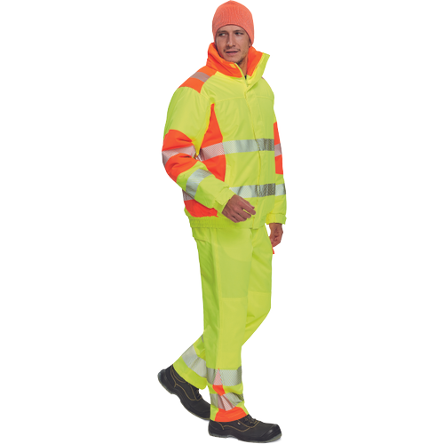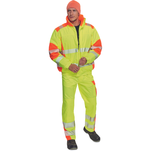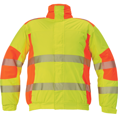 Męska, ocieplana kurtka pilotka wysokiej widoczności. Atrakcyjny design łączący 2 odblaskowe kolory. Kaptur chowany w kołnierzu. Dwie boczne kieszenie zapinane na zamek i jedna wewnętrzna na telefon. Regulacja mankietów na rzepy Velcro. Nowoczesny, zaawansowany technologicznie materiał wysokiej jakości. Membrana TPU.