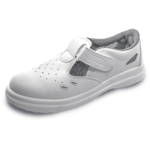 Sandały ochronne z metalowym podnoskiem, antystatyczną i antypoślizgową podeszwą z PU, tłumieniem w okolicach pięty, cholewką z mikrowłókna, z podszewką z zabezpieczeniem antybakteryjnym SANITIZED.