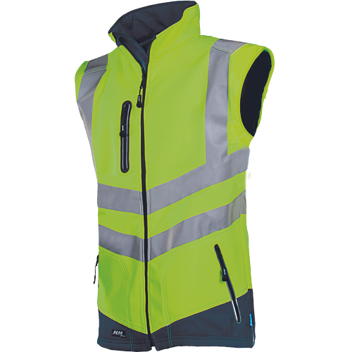 Szyte rękawice Hi-Vis wykonane z mieszanki poliestru i Spandexu wzmacniane syntetyczną skórą w części chwytnej i na koniuszkach palców. W części chwytnej dłoni silkonowy zadruk dla zwiększonej chwytności, neoprenowy mankiet zapinany na rzepy Velcro. Wstawka frotte chłonąca pot na wierzchniej części kciuka.