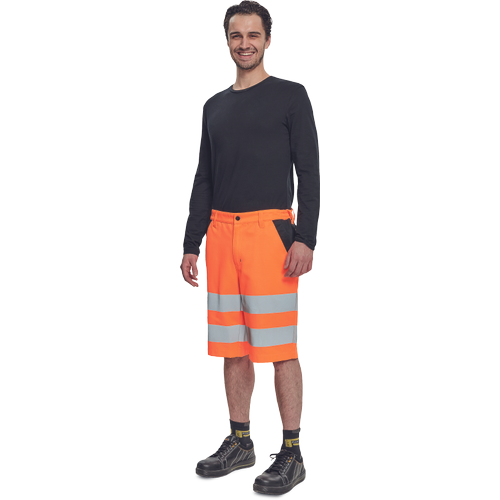 Szyte rękawice Hi-Vis wykonane z mieszanki poliestru i Spandexu wzmacniane syntetyczną skórą w części chwytnej i na koniuszkach palców. W części chwytnej dłoni silkonowy zadruk dla zwiększonej chwytności, neoprenowy mankiet zapinany na rzepy Velcro. Wstawka frotte chłonąca pot na wierzchniej części kciuka.