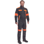 Rękawice ochronne szyte z wysokiej jakości koziej skóry w części chwytnej i bawełnianej dzianiny w części wierzchniej. Opuszki palców pokryte skórą. Mankiety zapinane na rzepy Velcro.