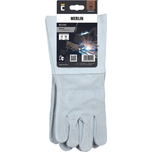 Rękawice skórzane z dwoiny wołowej, mankiet o szerokości 15 cm, bez podszewki. Certyfikat: prace spawalnicze – typ B (wariant W – szerszy mankiet)