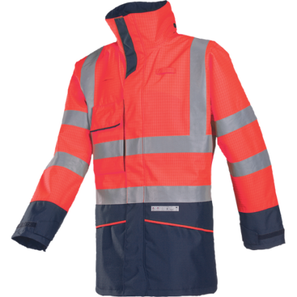 • men's flame retardant and anti-static jacket • fixed hood • zipper closure under flap with press studs • sleeve narrowing by press studs