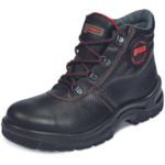 Trzewiki ochronne do kostki ze stalowym podnoskiem, antystatyczną i antypoślizgową, olejoodporną podeszwą, tłumieniem w okolicach pięty, z cholewką wykonaną z oddychającej skóry.