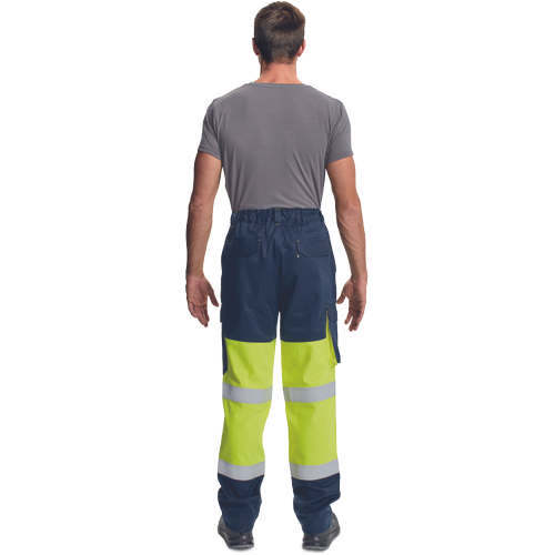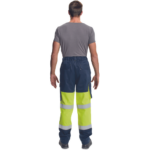 • spodnie multiochronne HI-VIS z elastycznym pasem • 2 kieszenie boczne, 2 kieszenie udowe, 2 kieszenie tylne z patką na rzep • wszywane taśmy odblaskowe wokół łydek • możliwość wydłużenia nogawek