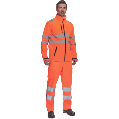 • w pełni ostrzegawcza męska kurtka softshellowa z membraną TPU • odblaskowe taśmy o szerokości 5 cm na ramionach, rękawach i dolnej części • zapięcie na zamek błyskawiczny • 1 kieszeń na piersi i 2 boczne kieszenie zapinane na zamek • rękawy z zapięciem na rzep • ściągacz u dołu kurtki