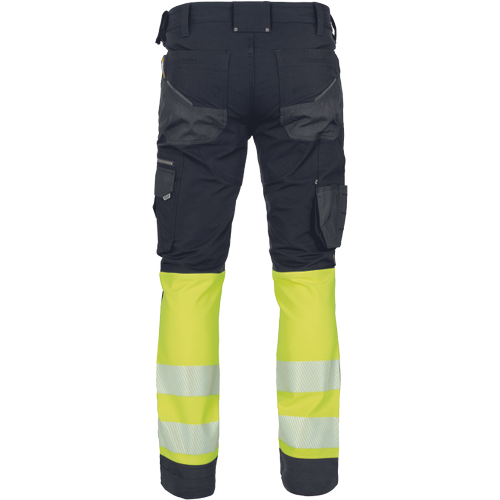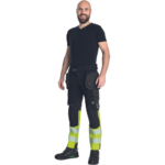 Szyte rękawice Hi-Vis wykonane z mieszanki poliestru i Spandexu wzmacniane syntetyczną skórą w części chwytnej i na koniuszkach palców. W części chwytnej dłoni silkonowy zadruk dla zwiększonej chwytności, neoprenowy mankiet zapinany na rzepy Velcro. Wstawka frotte chłonąca pot na wierzchniej części kciuka.