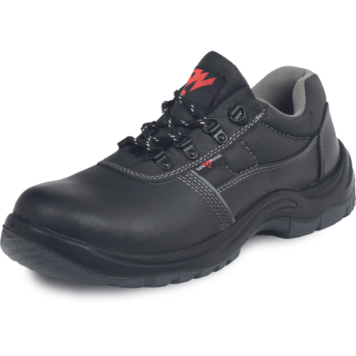 Klasyczne półbuty ochronne ze stalowym podnoskiem, który chroni przed naciskiem z siłą do 15 kN lub ładunkiem do 20 kg z wysokości 1m. Podeszwa posiada doskonałe właściwości antypoślizgowe i jest również odporna na oleje i ścieranie. Cholewka z dwoiny skórzanej odporna na penetrację i wchłanianie wody; wyściółka wewnętrzna wykonana z oddychającego poliestru. Dzięki doskonałej relacji cena/jakość model spełnia oczekiwania szerokiego grona odbiorców.