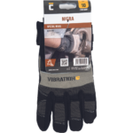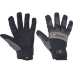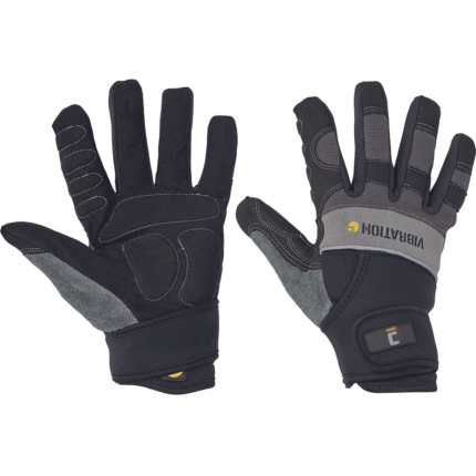 Rękawice ze sztucznego zamszu w części chwytnej, ze Spandexu na grzbiecie dłoni, włącznie z ochroną stawów ręki, z podwójnym ściąganym mankietem na rzepy i poduszkami antywibracyjnymi umieszczonymi w eksponowanych miejscach.
