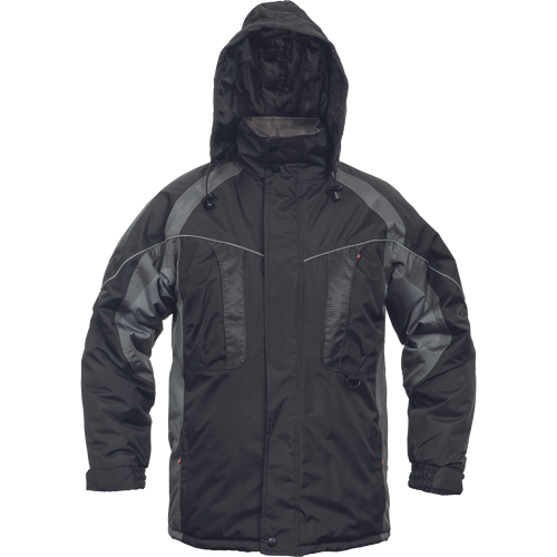 • ocieplana, nieprzemakalna kurtka z kapturem chowanym w kołnierzu • zewnętrzne wykończenie materiału zapewnia dużą odporność na uszkodzenia mechaniczne • dół kurtki z możliwością regulacji obwodu za pomocą sznurka • elementy odblaskowe