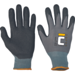 Rękawice wykonane z nylonu/lycra jersey powlekane mikroporowatym nitrylem, doskonała przepuszczalność, nitrylowe nakropienie w części chwytnej i na palcach, bardzo dobra chwytność w suchym, mokrym i zaolejonym środowisku.