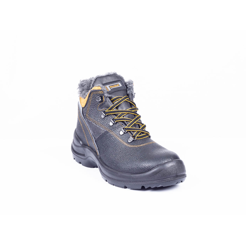 Ocieplone trzewiki ochronne z metalowym podnoskiem i wkładką antyprzebiciową, podeszwą antystatyczną i antypoślizgową PU/PU odporną na kwasy i oleje, tłumienie w okolicach pięty, wodoodporne, wykonane z oddychającej skóry, elementy odblaskowe w celu zwiększenia widzialności.