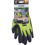 Rękawice ochronne z pięcioma palcami z przędzy syntetycznej, bezszwowe, pokryte warstwą lateksu w części chwytnej dłoni i na palcach.