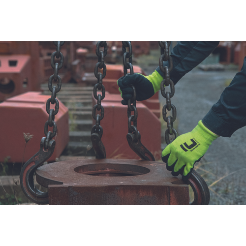 Ocieplane, bezszwowe dziane rękawice ochronne. Wykonane z syntetycznych włókien i mikroporowatego, oddychającego lateksu w części dłonicowej i na palcach. Elastyczny ściągacz.