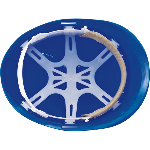 HDPE helmet with ventilation, 6-point head cross and adjustable size (55-62 cm).
