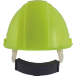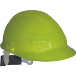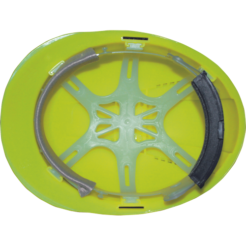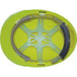 HDPE helmet with ventilation, 6-point head cross and automatically adjustable size (53-62 cm) in Hi-vis color.