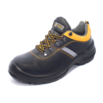 Półbuty ochronne z metalowym podnoskiem i wkładką antyprzebiciową, podeszwą antystatyczną i antypoślizgową PU/PU odporną na kwasy i oleje, tłumienie w okolicach pięty, wodoodporne, wykonane z oddychającej skóry, elementy odblaskowe w celu zwiększenia widzialności.