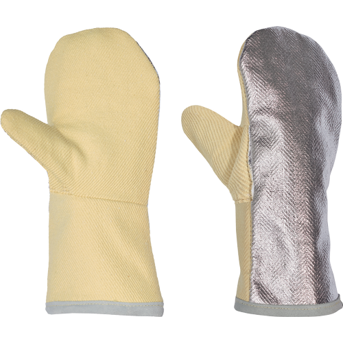 Komfortowe rękawice ochronne z jednym palcem. Bez powłoki aluminiowej. Szeroki krój zapewnia użytkownikowi większy komfort. Trójwarstwowa struktura: zewnętrzna powłoka wykonana z materiału, środkowa warstwa izolacyjna z filcu, warstwa wewnętrzna będąca w kontakcieze skórą wykonana jest w 100% z bawełny. Długość: 34 cm.Mankiety wykończone są skórą, co zmniejsza ryzyko poparzenia.