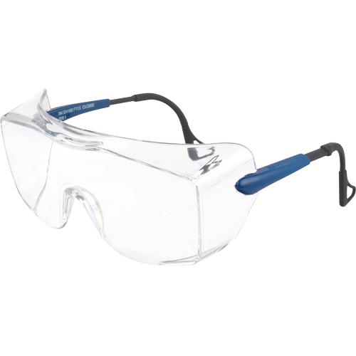 Goggles over prescription glasses are designed to protect the eyes and goggles from unwanted dirt, scratches and bumps. The goggles are designed to be worn over prescription glasses and provide comfortable wearing, including high compatibility. They are light and equipped with a clear polycarbonate lens with protection against scratches and fogs set in a classic blue frame, with sides adjustable to five lengths with a rotating end of the rear part, thanks to which it holds perfectly in any position. They provide excellent protection against ultraviolet (UV) radiation. They are designed for use in various environments and because they have no metal parts, they are also ideal for electricians.