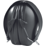 Bardzo płaskie czarne ochronniki słuchu, ze składanym pałąkiem.