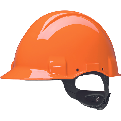 The 3M™ Safety Helmet G3001NUV has a headband with an adjustment wheel and a plastic sweatband to ensure comfort; The 3M™ Uvicator™ indicator tells you when your safety helmet has been overexposed to UV rays and it's time to replace it; provides electrical isolation up to 440Vac; a short visor provides a better view upwards; the headband can be rotated 180° for a better view when working in confined spaces