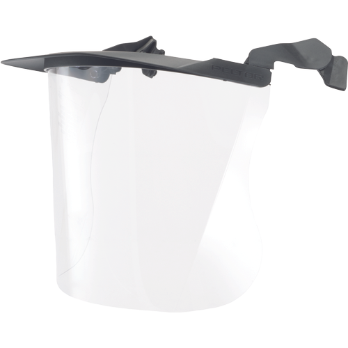 The face shield is a 1.0 mm thick, clear polycarbonate optical shield of class 1 with a standard peak. It is designed for use on a 3M ™ safety helmet and provides protection against light impacts.