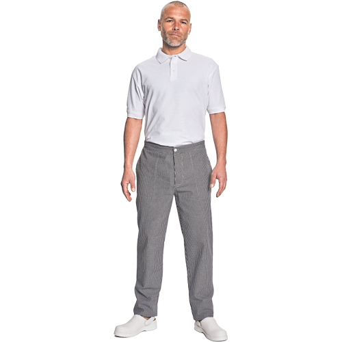 • spodnie dla rzeźnika • regulowane w pasie za pomocą guzików • 2 kieszenie z przodu i 1 tylna