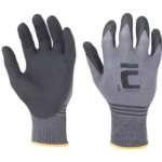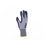 Szyte rękawice Hi-Vis wykonane z mieszanki poliestru i Spandexu wzmacniane syntetyczną skórą w części chwytnej i na koniuszkach palców. W części chwytnej dłoni silkonowy zadruk dla zwiększonej chwytności, neoprenowy mankiet zapinany na rzepy Velcro. Wstawka frotte chłonąca pot na wierzchniej części kciuka.