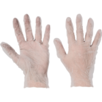 Rękawice jednorazowe winylowe, pudrowane, nadające się do krótkotrwałego kontaktu z produktami spożywczymi bez zawartości tłuszczu.
