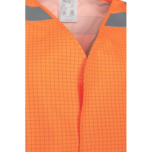 Hi-Vis anti-static vest with reflective FR stripes to increase your visibility; flame retardant properties; velcro fastening
