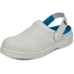 Ochronne, antypoślizgowe sandały z podnoskiem, z odporną na ścieranie, antystatyczną, olejoodporną podeszwą wykonaną z PU. Absorpcja energii w obcasie. Cholewka wykonana z wodoodpornej mikrofibry. Oddychająca, siateczkowa wyściółka z antybakteryjnym wykończeniem.