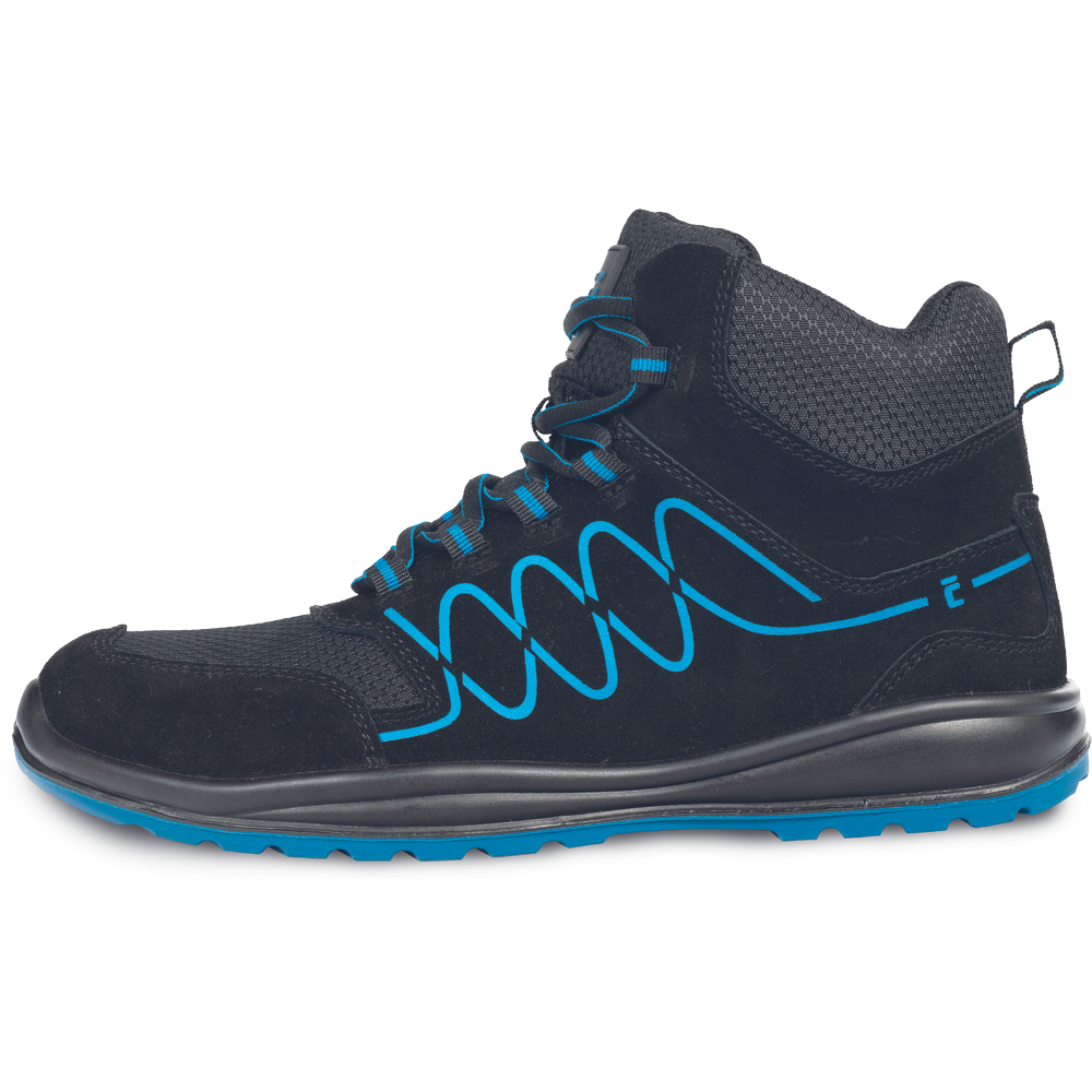 Trzewiki bezpieczne wyposażone w stalowy podnosek ochronny i stalową antyprzebiciową wkładkę; klasa ochrony S1, EN ISO 20345:2022. Obuwie antystatyczne i ESD, w którym podeszwa wykonana jest z poliuretanu podwójnej gęstości (PU/PU); absorpcja energii w obszarze pięty. Wytrzymała cholewka wykonana z kombinacji dwoiny skórzanej i materiału Oxford. Doskonały wybór do prac wewnątrz pomieszczeń takich jak przemysł motoryzacyjny, logistyka i magazynowanie czy produkcja przemysłowa.