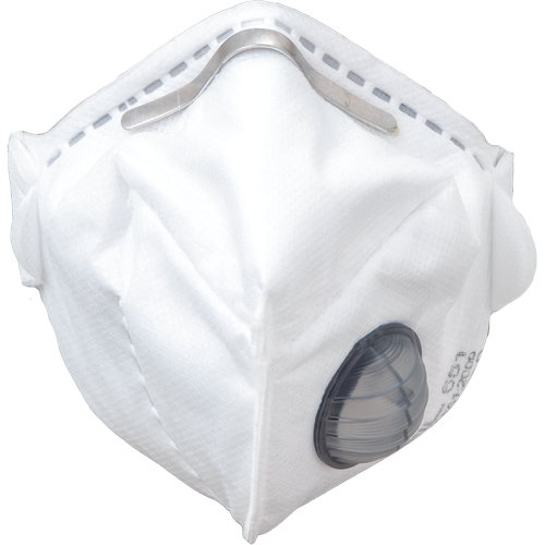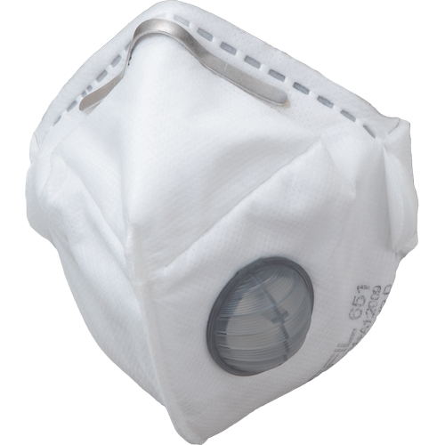 Składany respirator z zaworem wydechowym do 40x NPK/PEL, chroni przed cząstkami stałymi i ciekłymi aerozolami, FFP3 NR D (D – spełnia wymagania testu pyłem dolomitowym).