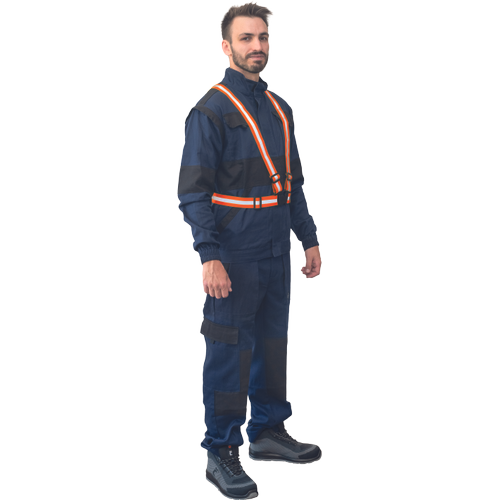 • elastyczne, odblaskowe szelki z plastikową klamrą z przodu • szerokość szelek 4 cm • szerokość pasów odblaskowych 1,5 cm • regulacja długości w ramionach i w pasie (max. 160 cm) • EN 13356:2001 — Akcesoria poprawiające widoczność do użytku nieprofesjonalnego