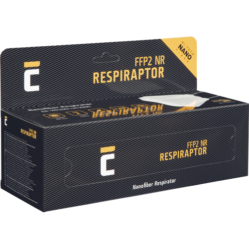 FFP2 NR RespiRaptor boasts a nanofiber filter that has several million pores on one square cm. It prevents viruses, bacteria, smog and dust from entering your mouth and nose. RESPILON® RespiRaptor is a respirator that is capable of blocking harmful substances by using a high-efficiency nanofiber filter filter.