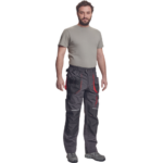 • męskie spodnie robocze z elastycznym pasem i wielofunkcyjnymi kieszeniami • wzmocnienia z materiału Oxford 600D z możliwością włożenia nakolanników • trwałe, potrójne przeszycia nogawek i w kroku • odblaskowe wykończenie • możliwość wydłużenia nogawek