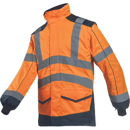 Szyte rękawice Hi-Vis wykonane z mieszanki poliestru i Spandexu wzmacniane syntetyczną skórą w części chwytnej i na koniuszkach palców. W części chwytnej dłoni silkonowy zadruk dla zwiększonej chwytności, neoprenowy mankiet zapinany na rzepy Velcro. Wstawka frotte chłonąca pot na wierzchniej części kciuka.