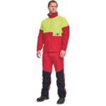• Żywe, kontrastujące z zielenią lasu kolory zapewniają użytkownikowi widoczność z daleka • zapinana na zamek • jedna przednia, naszywana kieszeń z klapką • rękawy regulowane na napy • wentylacja pleców • wydłużony tył