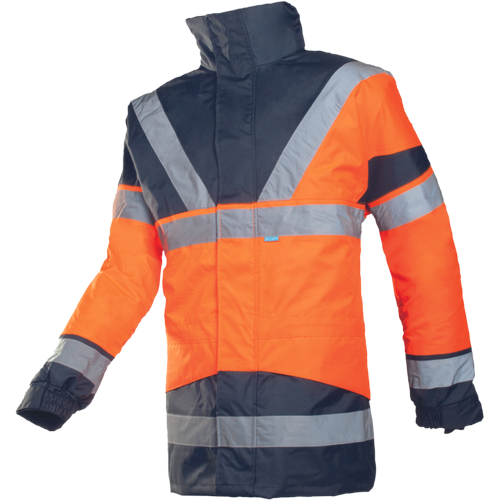 Szyte rękawice Hi-Vis wykonane z mieszanki poliestru i Spandexu wzmacniane syntetyczną skórą w części chwytnej i na koniuszkach palców. W części chwytnej dłoni silkonowy zadruk dla zwiększonej chwytności, neoprenowy mankiet zapinany na rzepy Velcro. Wstawka frotte chłonąca pot na wierzchniej części kciuka.