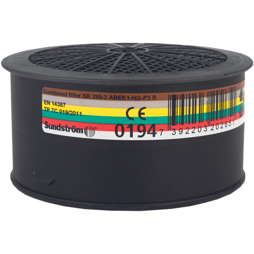 SR 299-2 jest filtropochłaniaczem kombinowanym, składającym się z pochłaniacza klasy 1 i filtrem przeciwpyłowym klasy 3. Przeznaczony do stosowania w maskach i półmaskach Sundström. Filtropochłaniacz typ ABEK1-Hg-P3 R chroni przed następującymi typami gazów, oparów i cząstek: Typ A chroni przed gazami i oparami organicznymi, np. rozpuszczalniki o temp. wrzenia pow. +65 °C. Typ B chroni przed gazami i oparami nieorganicznymi, np. chlor, siarkowodór i cyjanowodór. Typ E chroni przed kwaśnymi gazami i oparami, np. dwutlenek siarki i fluorowodór. Typ K chroni przed amoniakiem i niektórymi aminami, np. etylenodwuamina. Typ Hg chroni przed oparami rtęci. Maksymalny czas użytkowania 50 godzin. Typ P3 R* chroni przed wszelkiego rodzaju stałymi cząsteczkami. *R (Re-useable): Filtr przewidziany jest do używania w okresie dłuższym niż jedna zmiana robocza.