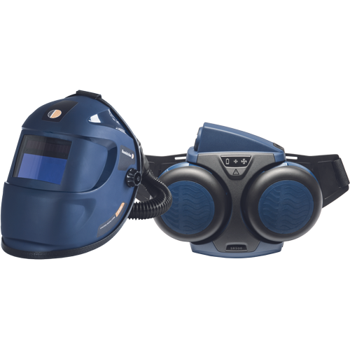 Zestaw jednostki nawiewowej SR 500 i przyłbicy spawalniczej SR 592. Obejmuje automatyczny filtr spawalniczy 4/9-13, akumulator STD, ładowarkę SR 513, pas skórzany SR 503, 2 filtry cząstek stałych SR 510 P3 R, 2 adaptery filtra, 10 filtrów wstępnych SR 221, 2 iskrochrony SR 336, 2 uchwyty na filtr wstępny, przepływomierz, zestaw zaślepek, ściereczkę do czyszczenia i instrukcje obsługi.