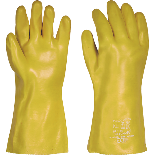 Rękawice szyte z bawełnianej dzianiny, powlekane PVC, odporne na kwasy i zasady (ługi).
