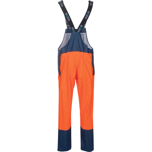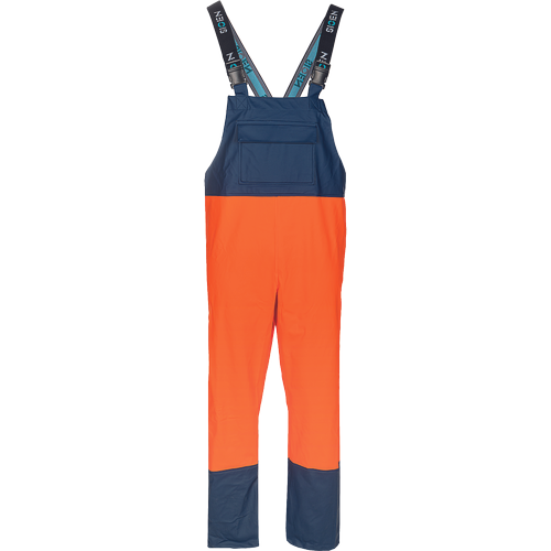 • men´s waterproof bibpants with elastic waist • 1 patched chest pocket • 2 inset pockets • braces with buckle