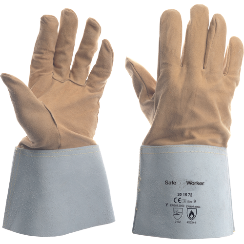 • deer leather offers the highest sensitivity of all welding gloves • cowhide split leather cap of 15 cm • cap provides good protection for the wrist