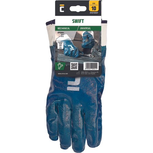 Rękawice wykonane z syntetycznej skóry w części chwytnej, wyposażone w panele pochłaniające drgania. Przeznaczenie: od lekkich do ciężkich prac. Zapięcie Velcro na nadgarstku zapewnia idealne dopasowanie. Grzbiet dłoni wykonany jest z elastycznego materiału. Rękawice spełniają wymogi normy EN 420 oraz EN 388: 2003.