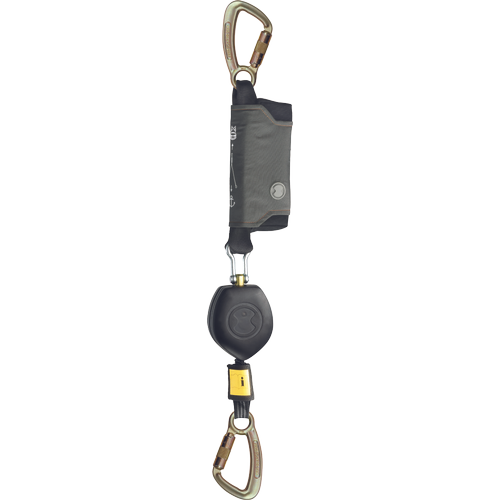 Skylotec PEANUT IF PLATFORMS standards: EN 360: 2002 length: 1.8 m load capacity: 135 kg weight: 1.58 kg CHARACTERISTICS: retractable fall arrester with webbing and integrated fall arrester steel carabiner KOBRA TRI (opening 22 mm, 22 kN) on both ends of the catcher APPLICATION: scaffolding, mobile work platforms